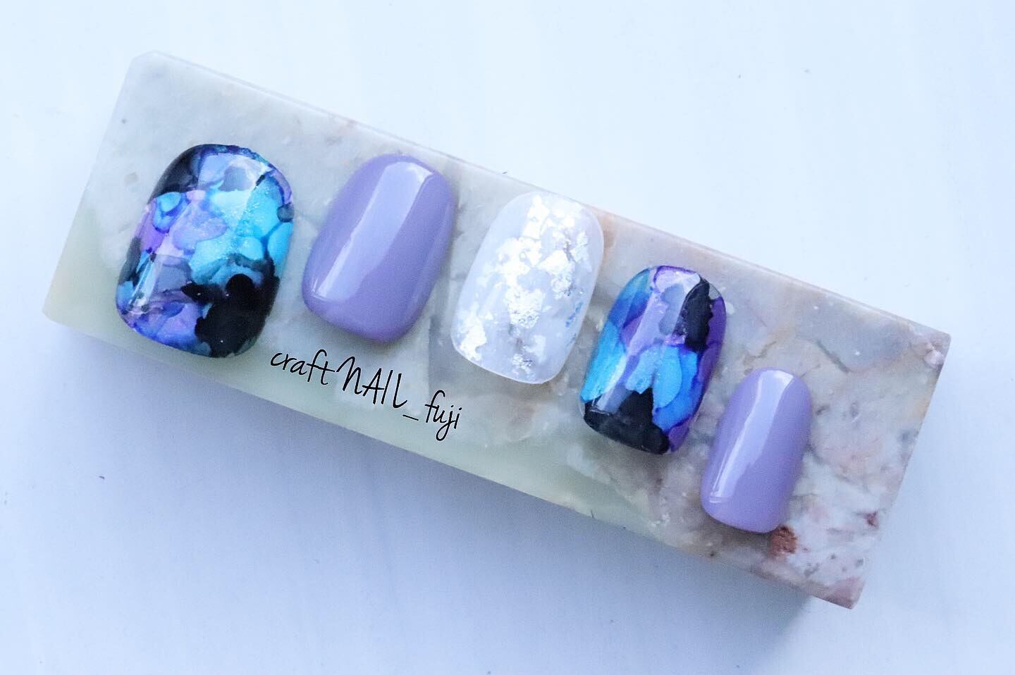 中指はシアーホワイトと純銀箔を入れマット仕上げにしました。